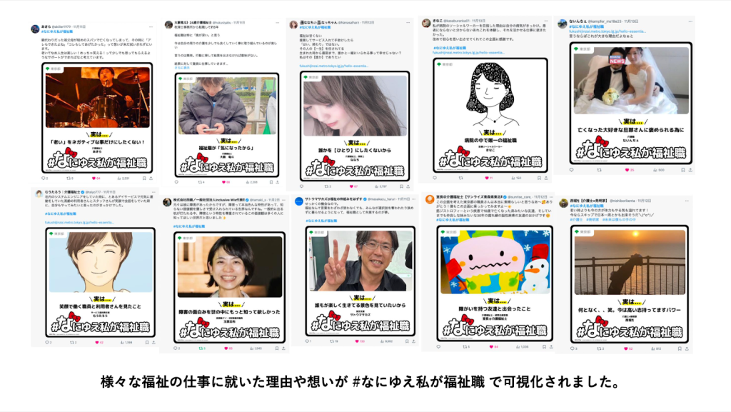 東京都の福祉人材集中PR月間にて、SNSを通じた福祉の仕事の魅力発信企画を実施しました。「#なにゆえ私が福祉職」は、福祉職で働く「理由」や「きっかけ」を可視化し発信する取り組みです。