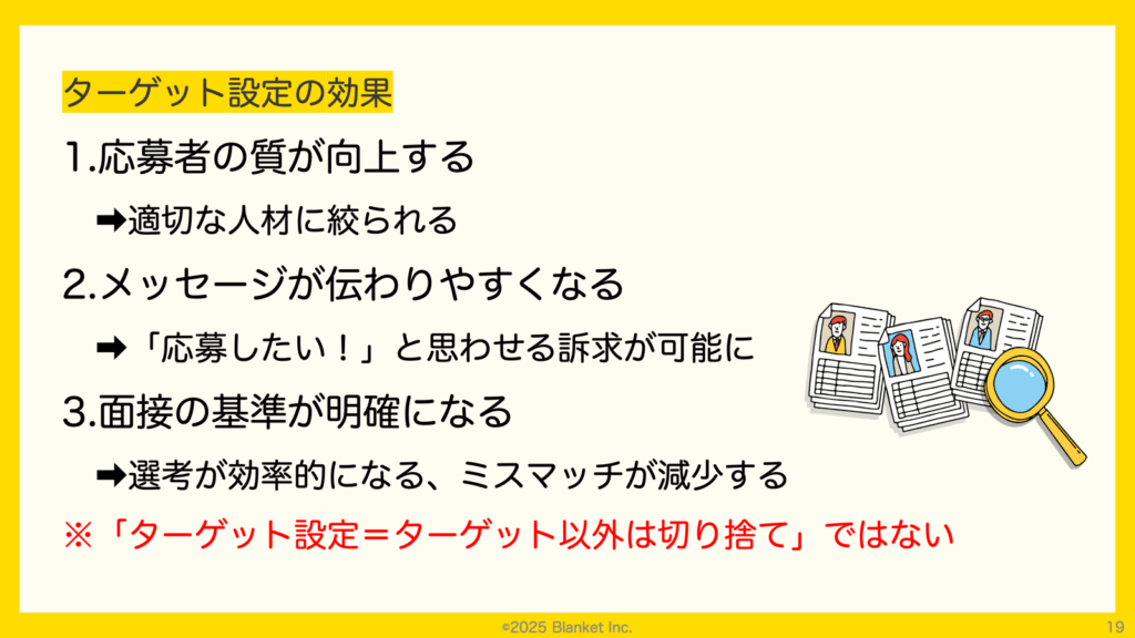 採用ターゲットを設定し、ターゲットに響く採用活動を計画・実行する。採用活動において非常に重要な視点ですが、慢性的な人材不足に悩む介護・福祉業界では、「応募を減らしたくない」と敬遠されがちです。