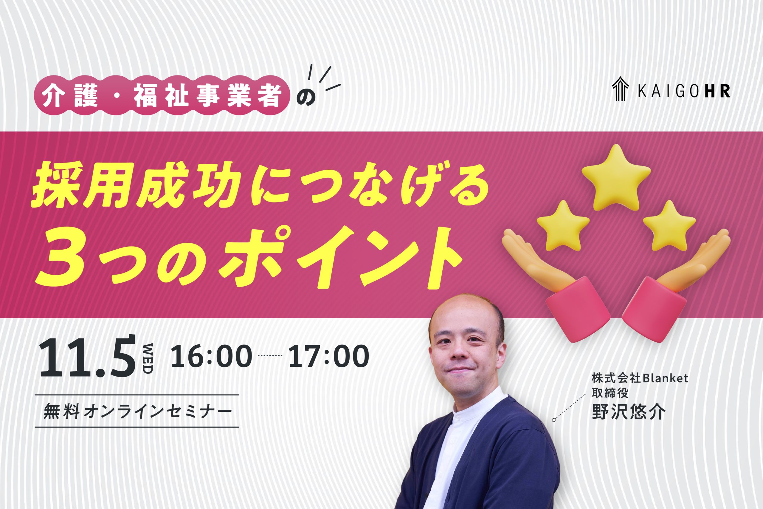 【無料オンラインセミナー】介護・福祉事業者の採用成功につなげる3つのポイント