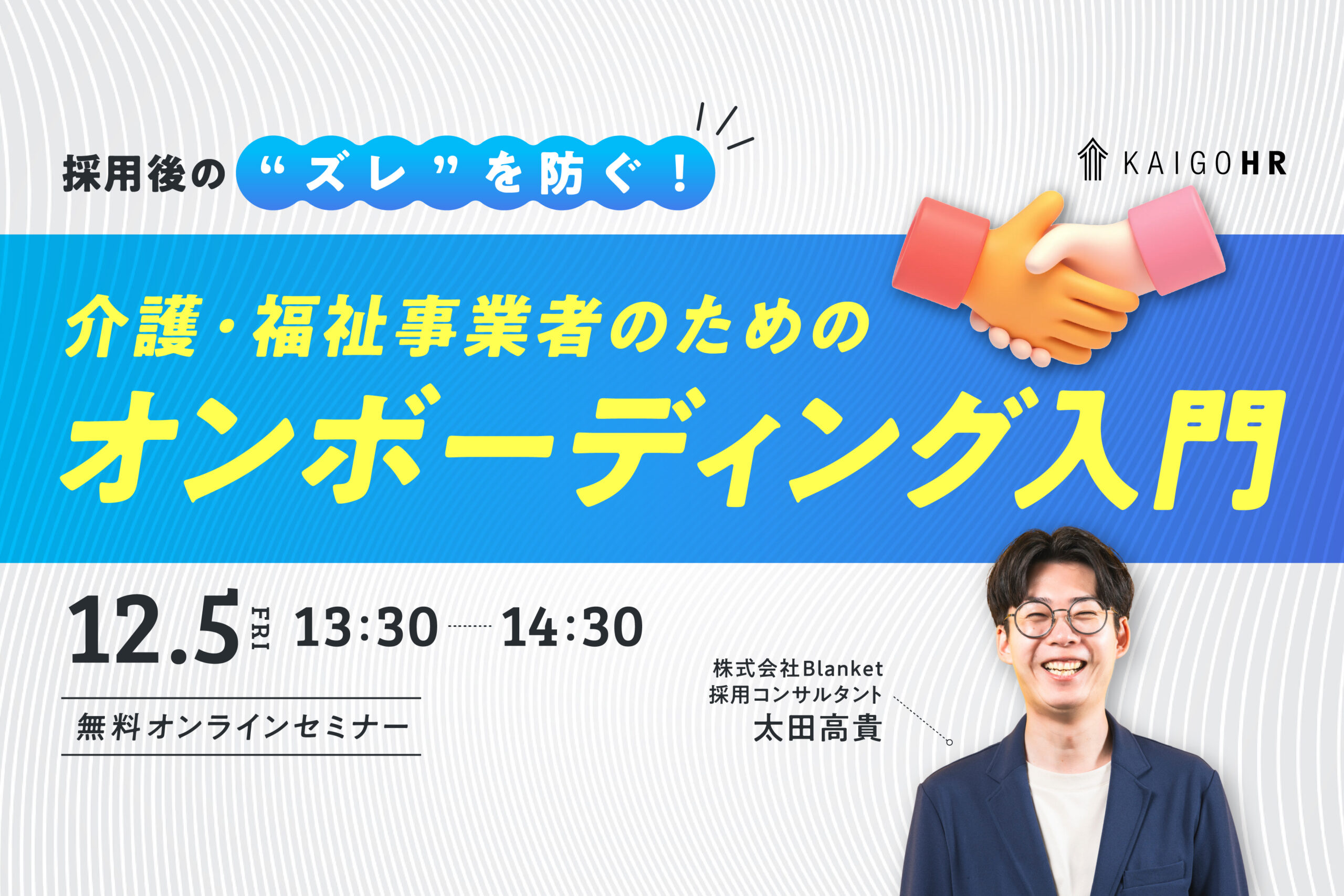 【無料オンラインセミナー】採用後の“ズレ”を防ぐ!介護・福祉事業者のためのオンボーディング入門