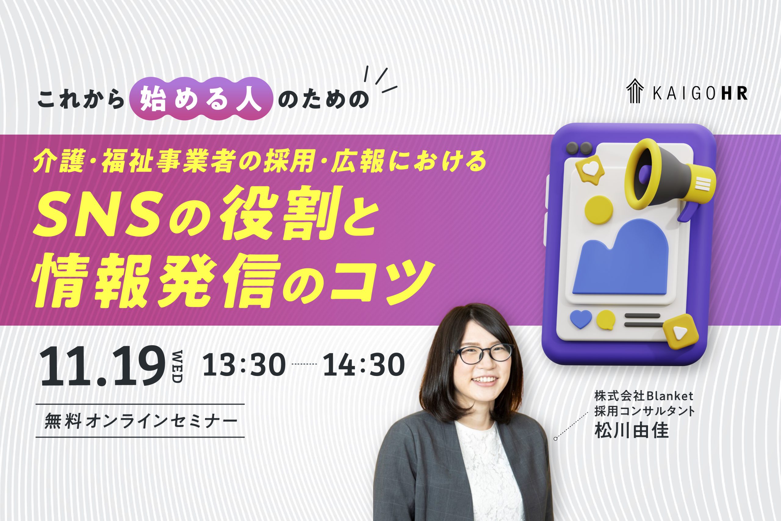 【無料オンラインセミナー】これから始める人のための介護・福祉事業者の採用・広報におけるSNSの役割と情報発信のコツ